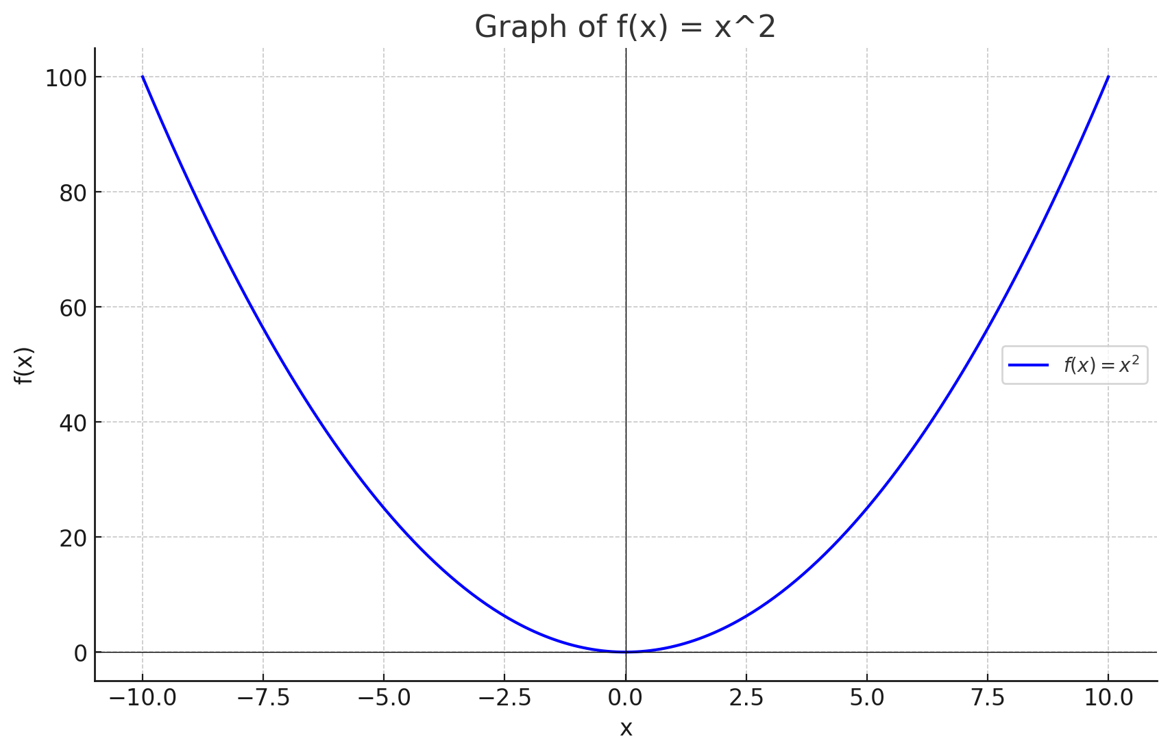plt.plot(x, f(x), label=r'$f(x) = x^2$', color='blue')
